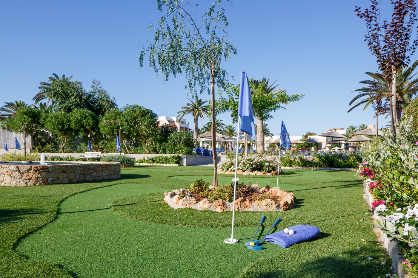 Fans of the “white sport” can enjoy our tennis courts which were upgraded and restyled in 2023 now offering quartz-sand. 2 of the 4 tennis courts are free with all-inclusive/Ultra-all-inclusive. The other 2 can be reserved as alternative and for half board bookings with extra charge. Book your court at our staff member in the court area where you can borrow also the equipment, free of charge, in case you have not brought along your own tennis rackets.